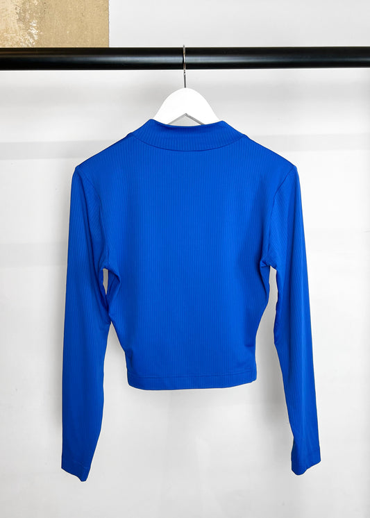 Long Sleeve Top in Electric Blue Ribbed Spandex "Vicky”