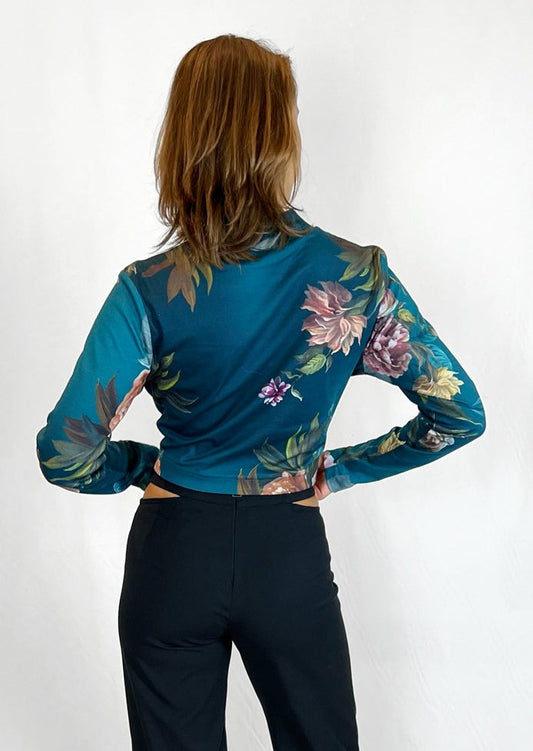 Long Sleeve Top with in Teal with Floral Print "Vicky”