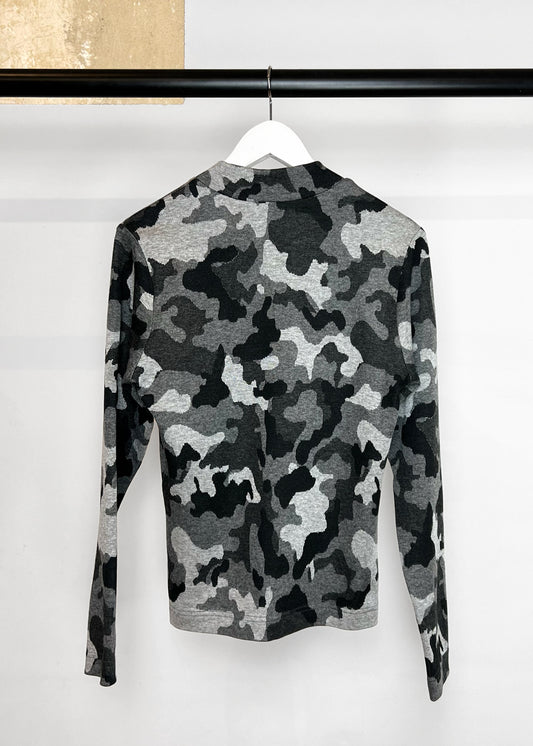 Long Sleeve Top in Camouflage Grey Jacquard Knit "Vicky”