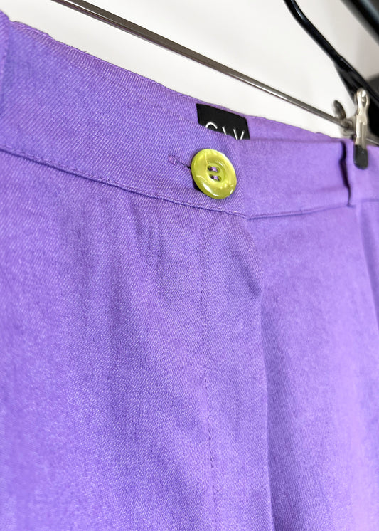 Pleated Wide Leg Trousers in Lilac Denim "Charlotte"