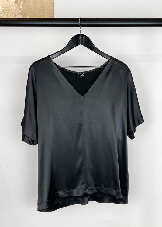 V-Neck Short Sleeve Top in Solid Black "Lille"