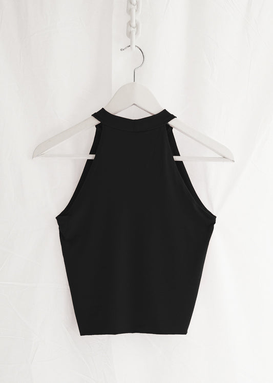 High Neck Crop Top in Black Cotton Jersey "Milana"