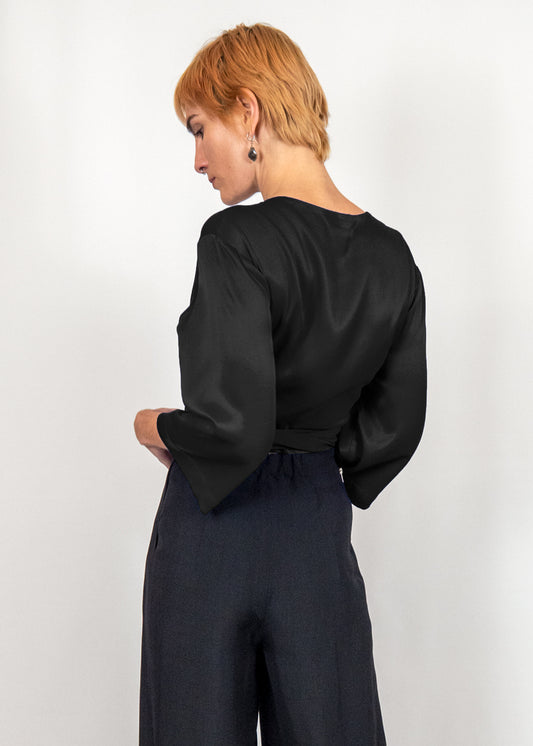 Wrap Crop Top in Black Viscose Acetate "Nika"
