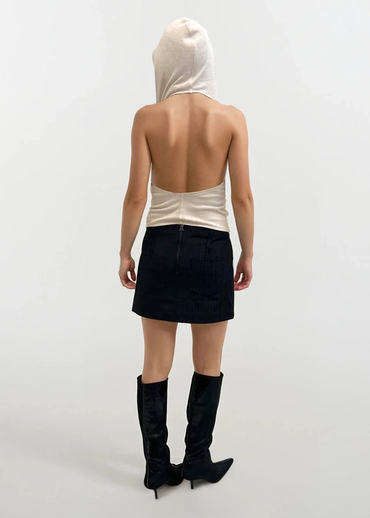 Hooded Backless Top in Champagne Ribbed Jersey with Silver Lurex Thread "Alicia"