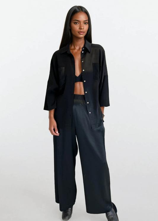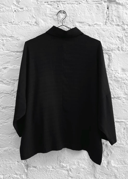 Collared Shirt with 3/4 Sleeve in Black Viscose Acetate "Lynn"